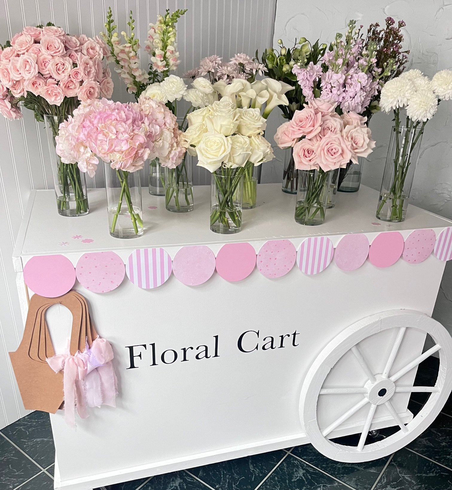 • Styled pop-up flower cart in your chosen color palette